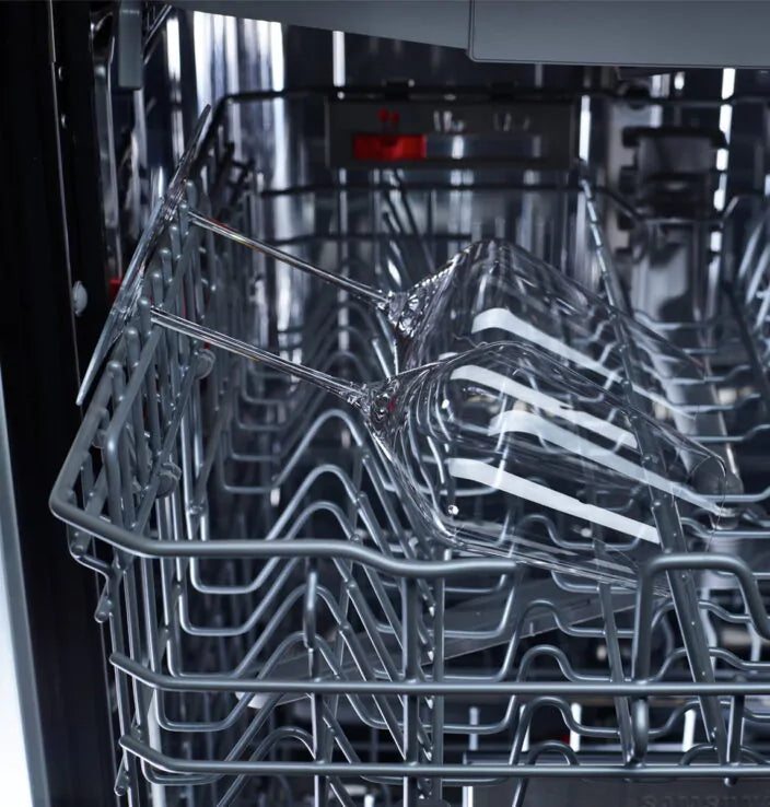 Smart Loading: Place glasses securely (ideally in glass cages) so they do not touch. Avoid putting tall, narrow glasses in corners where water cannot reach them easily.