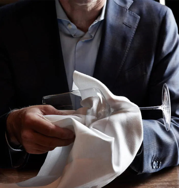 • Preparation: For an extra-brilliant shine, briefly hold the goblet over steam before polishing with a lint-free cloth. Ensure your towels are washed without fabric softener or starch.